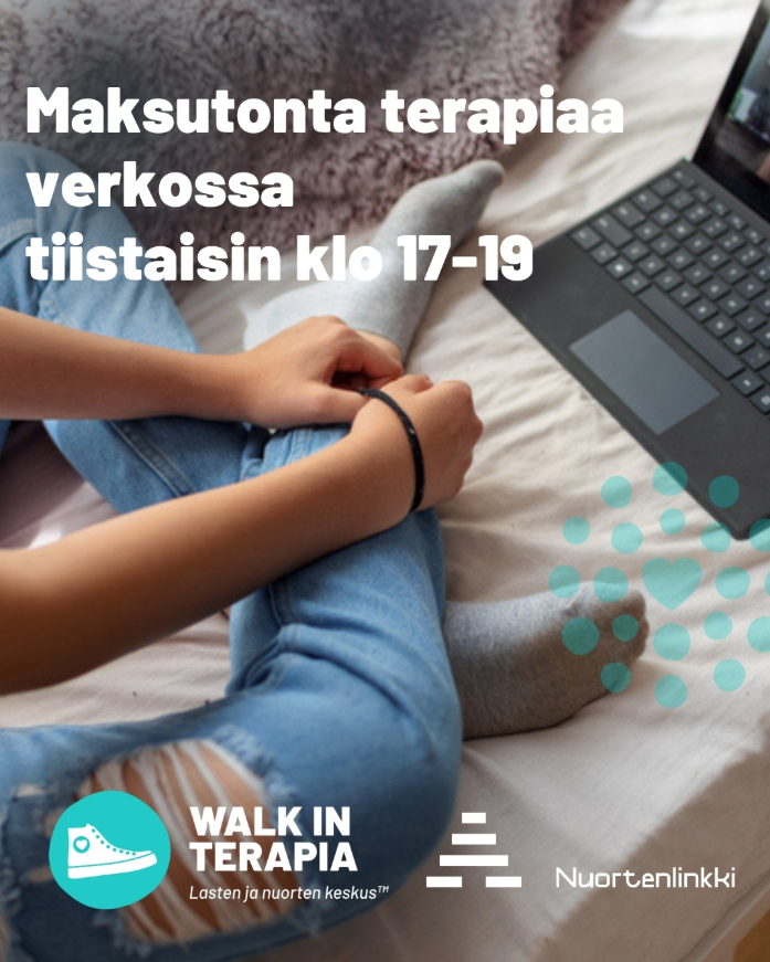 Lasten ja nuorten keskus ja A-klinikkasäätiön Nuortenlinkki toteuttavat Walk in -terapiaa verkossa tarjoten matalan kynnyksen mielenterveysapua alle 29-vuotiaille.